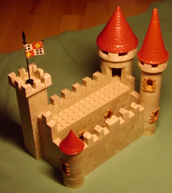 Så avslutar vi det hela snyggt med krenellering (tinnar och skottgluggar) på murarna och tak och flaggor på tornen!