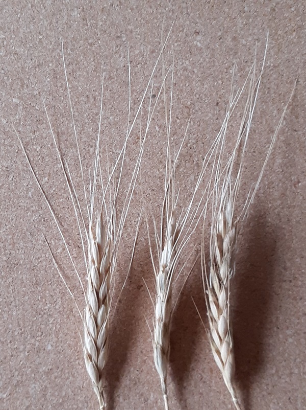 Ett korsningsexperiment från Sovjettiden som legat gömt i genbanker i decennier. En oktaploid korsning av Triticum turgidum subsp. carthlicum och Triticum timopheevii. De hade tydligen hoppats på hög avkastning och god resistens mot svampsjukdomar. Efter att ha provodlat den i ett år kan jag preliminärt konstatera att de misslyckats i båda avseendena. Den var ovanligt hårt drabbad av mjöldagg och axen var smala och taniga med få korn.